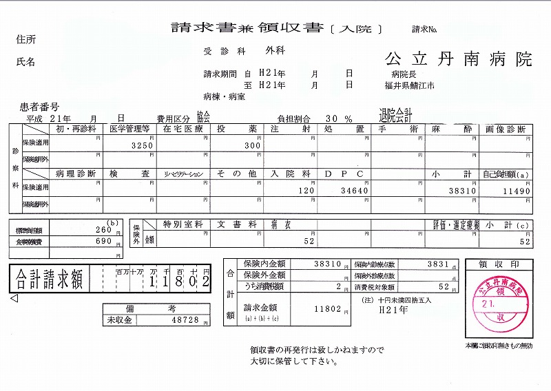 安いんじゃ!! と思ったら、もう一枚ありました。11月分。。。やっぱ、6人部屋は保険効くけど、個室は効かないのかな。。でも、分からないことだらけ。。
