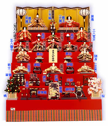 本来「内裏雛」とは雛人形の男雛と女雛の一対を指すが、男雛を「お内裏様」、女雛を「お雛様」と呼ぶ誤りは「うれしいひなまつり」の歌詞から一般化している。