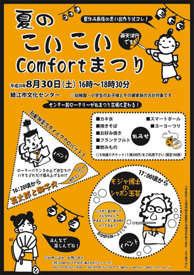 Comfortまつりは、年4回季節ごとに、いろんな事業をしている。特に地元密着、幼児を持つ家族に、手軽に参加できる、パフォーマンスを身近に感じてほしい。