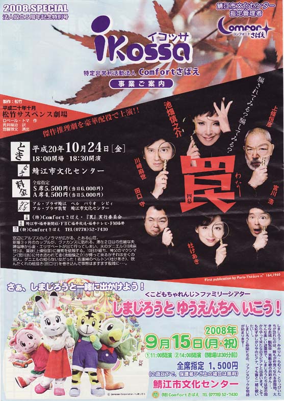 5周年の感慨深いところは、後日として、チラシとラジオの反応の多くは、売り切れ間際の「しまじろう」でした(笑) 「罠」 絶対面白いと思いますよ。