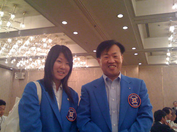 彼女は、イタリアへ行ってきた。右のオジサンは、担当役員であり、鯖江市国際交流協会の会長さん。