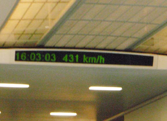 動き出すと、上海浦東国際空港まで、30KMを7分20秒で走る。。平均時速でも250km/hになる。。