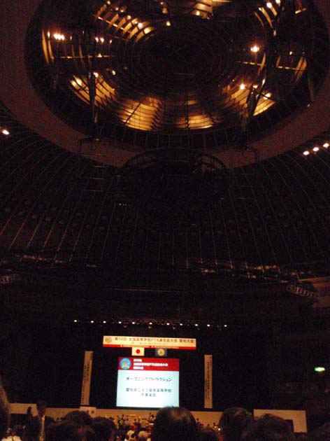 全国大会はここのように、1万人規模を収容出来なければならない。。5年後くらいには福井であるらしい。
