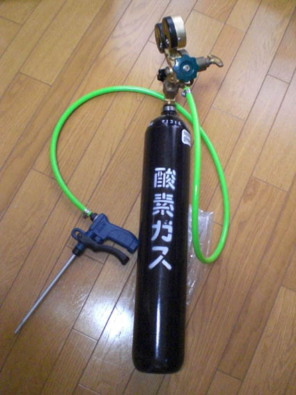 まず、2重にした、袋に水と魚を入れる。ここまでは誰でも出来るのですが、酸欠で死なせないためには、水以上に酸素が重要です。この酸素ボンベさへ、購入すれば誰でも発送できます。