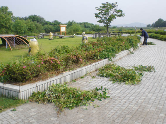 眠い目をこすりつつ、草刈に汗を流し、その後も町内の街路樹の草取りをした。