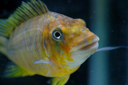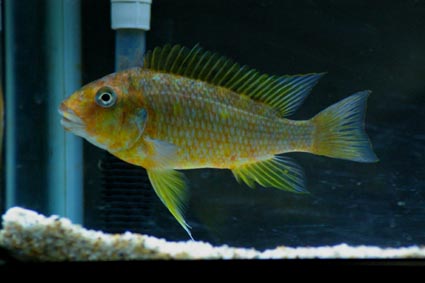 ここからは、私の完全な持論ですが、タンガニーカシクリッド全般に言えることですが、特にクサノティラピアは、色彩が微妙です。この繊細な色彩は、日本人より青い目を持つヨーロッパの人たちに好かれるのではないかと思っています。たしかに、このテンブエなどは、背びれやはらびれ、しりびれに美しい紋様と淡いイエローが特徴となっているので、私などは大好きですが、他の特徴がないが、美しい種はなかなか日本では人気が無いようです。それにしても、パピリオの人気種は高価です。。