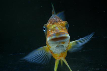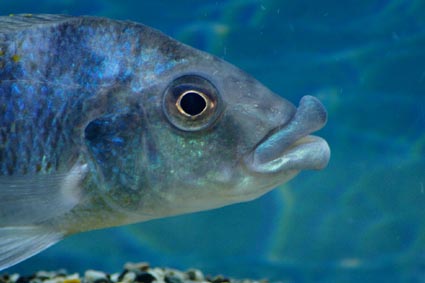 この唇は、石の下や、岩陰にいる、昆虫類を捕食するためにクッションとなるべく発達したと考えられています。魚食性の魚に沈下性の餌をやると、唇がズルムケになってしまい、見栄えが悪いので、してはいけません。逆にオルナタスなどには、沈下性の餌をやって、砂をいっぱい口に含ませることで、ぶよぶよの唇が保てます。