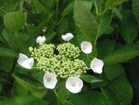 「がくあじさい 」というらしい。由来は、、私でもなんとなく分った。額縁のがく、なんですね。額紫陽花、、