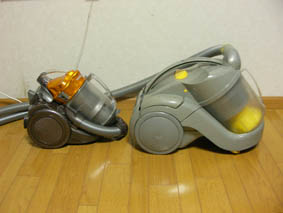 ダイソンの、キャニスター型の量産1号機が、右側のDC2で、1995年訪問販売で売られていました。このDC2のツインサイクロン原理が、、画期的原理で、技術者をうならせた訳ですが、それでも、フィルターを入れなければ、サイクロンだけでは取り除けないのが、実情だったようです。その後、本国で大ヒットしたDC8には、テレスコープ・ラップ方式を取り入れ、タバコの煙以下の粒子を取り除くことに成功しています。