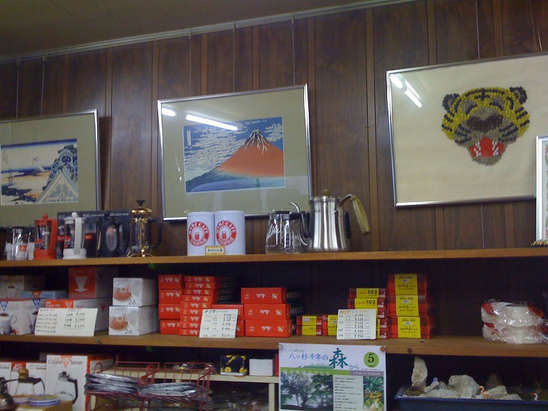 だって、コーヒーやさんなのに、浮世絵が飾ってある。。
