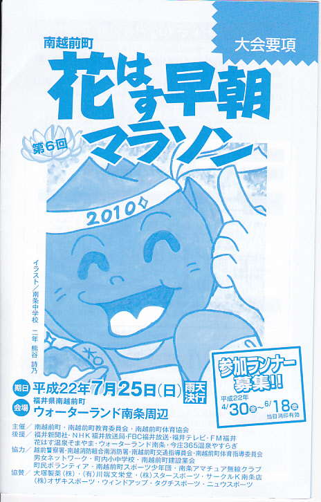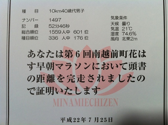 県内のマラソンって、夏には無いと思っていたのですが、「南条のマラソンには出るのですか?」って ふくい健康の森の職員さんに言われて。。 「いつなんですか?」 「でも、締め切り昨日まででしたよ。。。」
