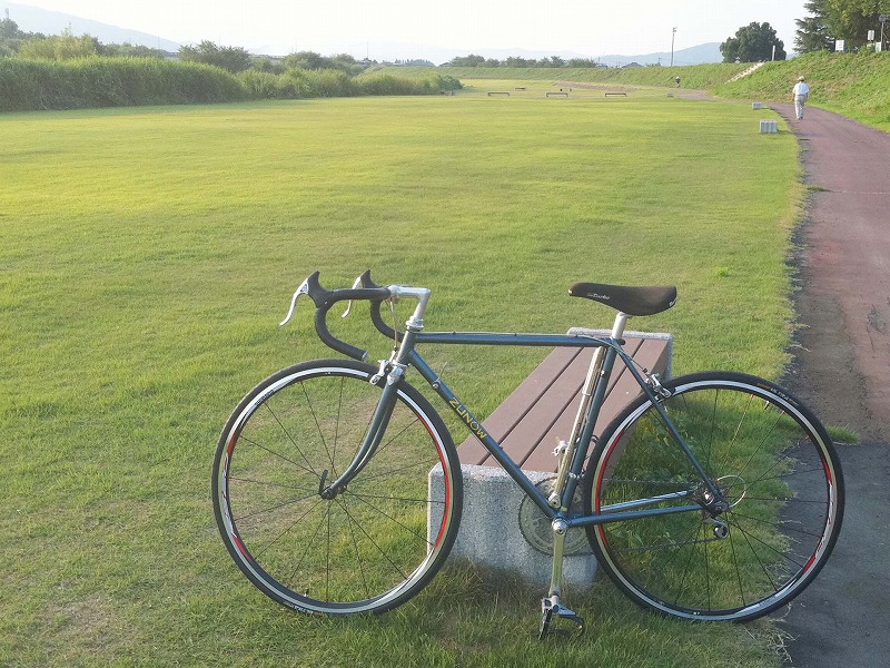 最近のロードレーサーのフレームは、カーボンフレームが主だと思うのですが、このころはクロモリフレームで、このフレームは、ZUNOW という、ハンドメイドフレームのメーカーのものです。