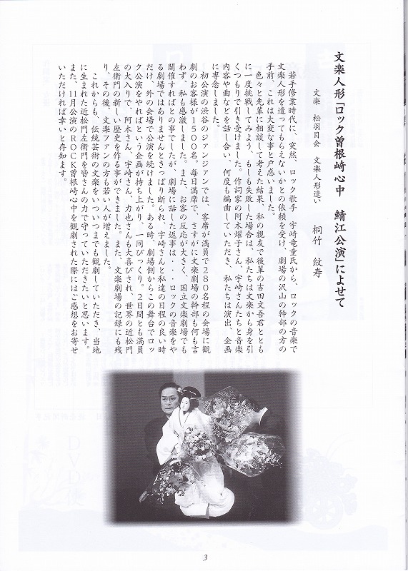 鯖江公演に寄せて の中の、「もしも失敗した場合は、私たちは文楽から身を引くつもりで引き受けました」