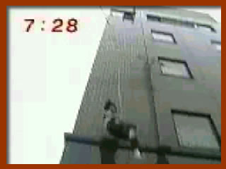 「それ行け菊間」生中継中に菊間アナが、 足立区谷在家のビル5階から防災器具(携帯用簡易降下機「セイフリィダウン」)を紹介中にロープが外れて5階から落下。